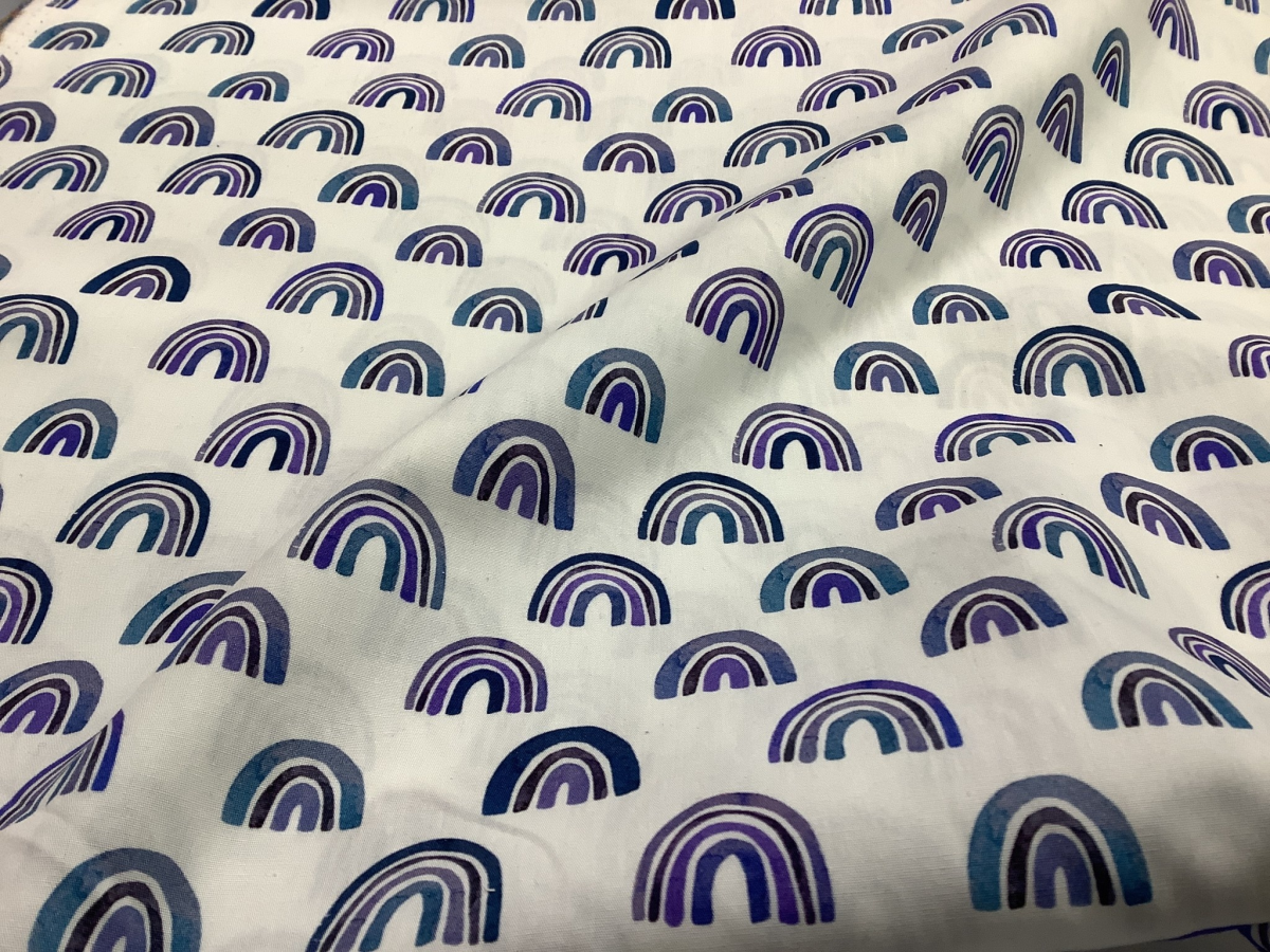 Mooie poplin katoen met blauwe regenboog opdruk